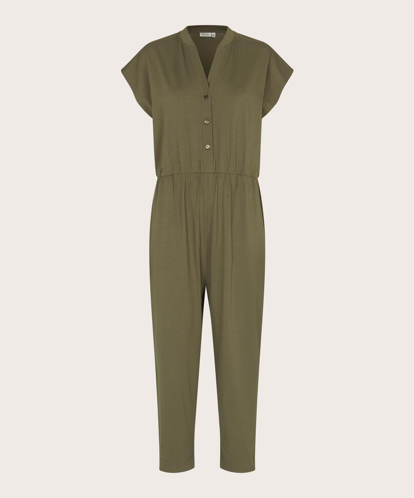 A jumpsuit is your shortcut to a smart look. This jumpsuit is cut in a soft jersey material for instant comfort. The jumpsuit is slightly fitted and has an elasticated waist to accentuate your feminine figure. The jumpsuit also features a deep V-neck with button fastening for easy on and off, welt pockets and loose legs that taper slightly at the bottom. A beautiful jumpsuit that you can wear to a party with a high heel or tone it down with trainers or sandals.