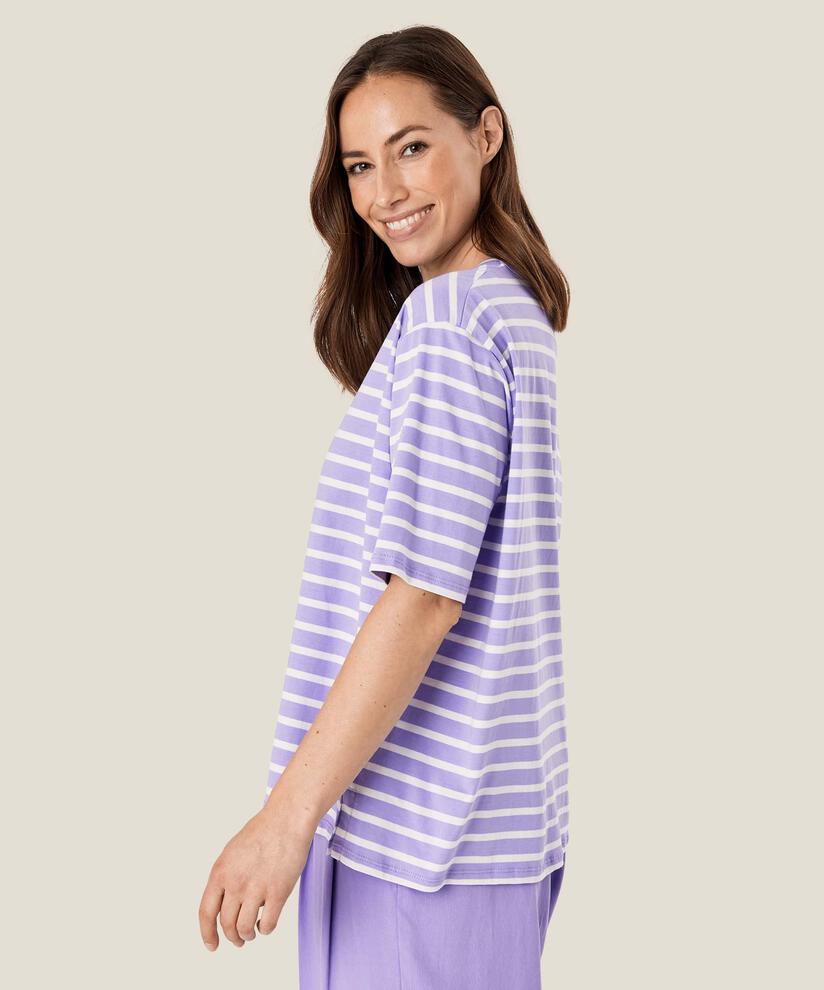 If your wardrobe features lots of colours and prints, you need great-fitting basic tops to style them with. And this striped top goes with everything. It is made of soft cotton and has a classic fit with straight lines that provide plenty of comfort. The top is designed with a round neck, short slits on the sides and is beautiful and comfortable to wear.