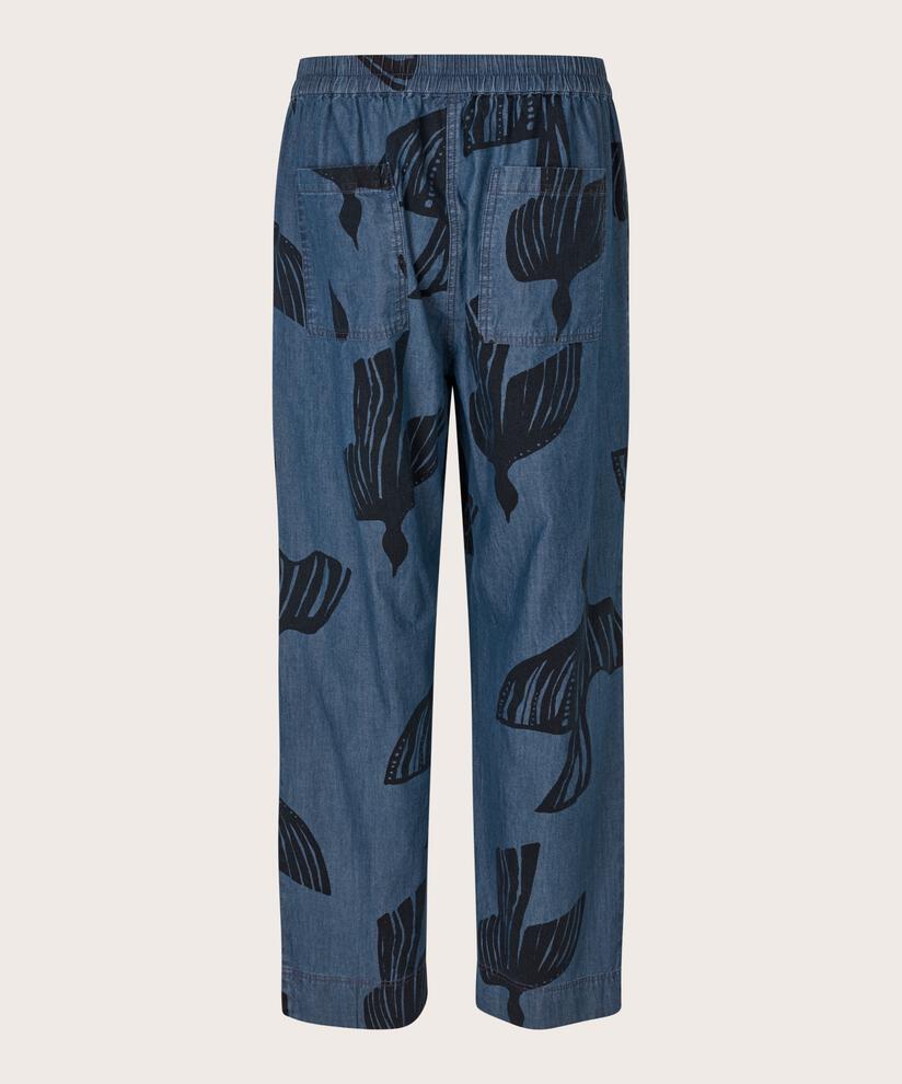 Soft denim can also be a canvas - on these trousers we've let a flock of artistic birds spread their wings. The trousers are designed with an elasticated waist, side slit pockets and straight, loose legs and are just as comfortable to wear as a pair of jogging bottoms. Also note the decorative back pockets. You can style them with a feminine shirt or patterned top for an effortlessly stylish look, or go all in on denim and bird print with our matching shirt or jacket.