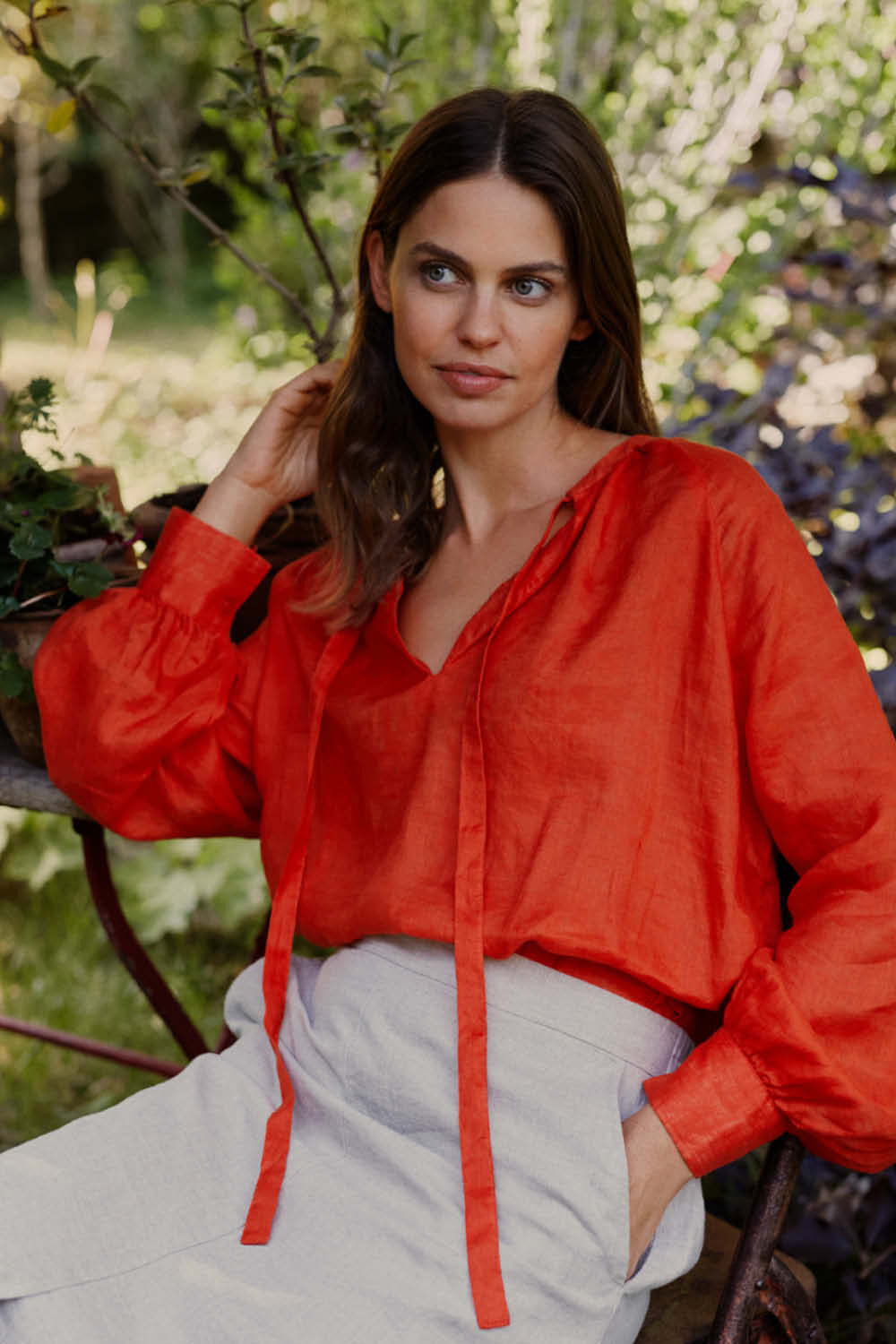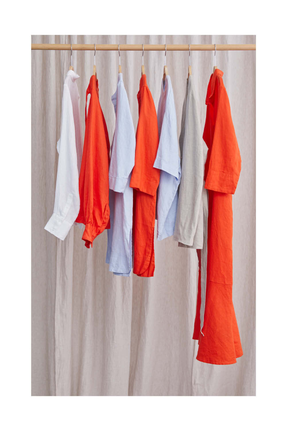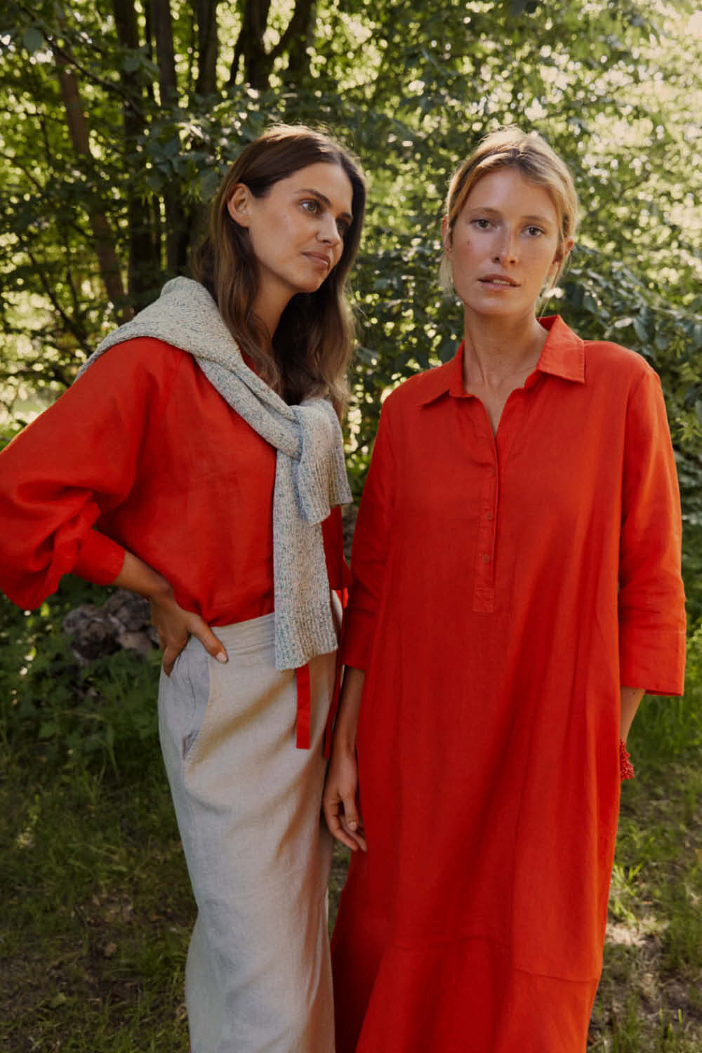 Renew your wardrobe with our well-known linen fabric in beautiful new colours: bold orange red, muted blue and deep green - perfect for warm spring days and hot summer days.