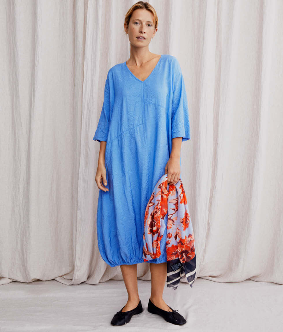 Here's a simple and uncomplicated blue dress with a relaxed cut that will instantly give you a sense of being at home. The dress is designed in a loose, oversized cut that offers plenty of volume and freedom of movement. Also enjoy the crinkled viscose, which is both flowy and comfortable to wear.