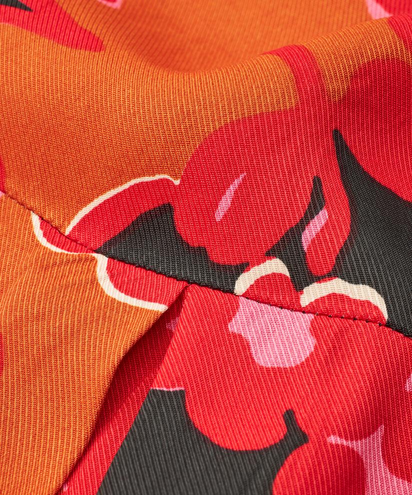 This season calls for reds, and this dress with a bright red floral print is just the ticket.The dress has a lovely A-shape that accentuates the chest and otherwise drapes softly over the body.