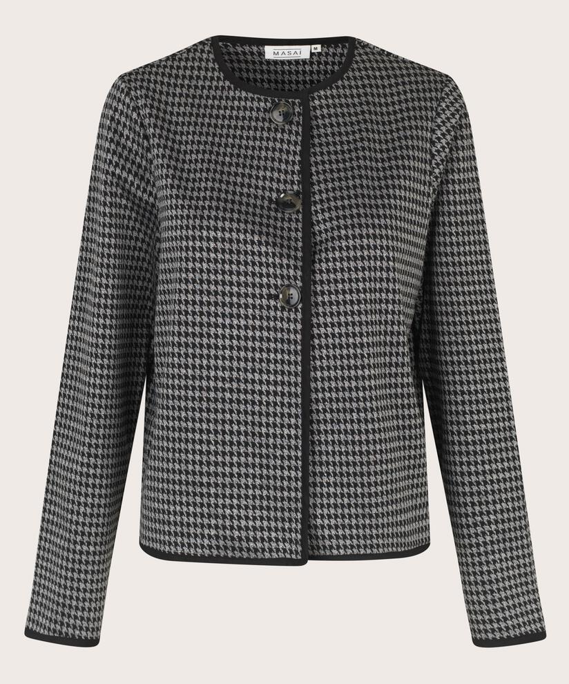 Some styles are love at first sight. Like this lightweight jersey jacket with a houndstooth pattern for a sophisticated look that's comfortable to wear at the same time. The jacket has no lining but is perfect as the finishing touch to a stylish dress or a shirt and trousers set. It has a classic cut with straight lines and is designed with a round neck, long sleeves and three buttons at the top so you can wear it both closed and open.