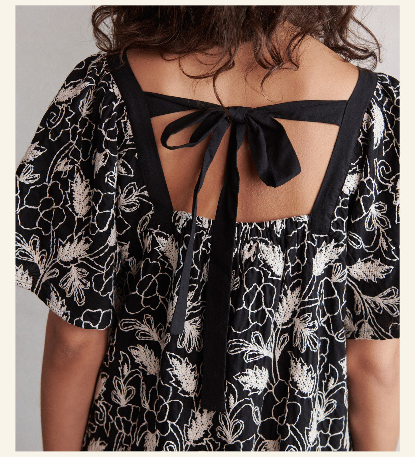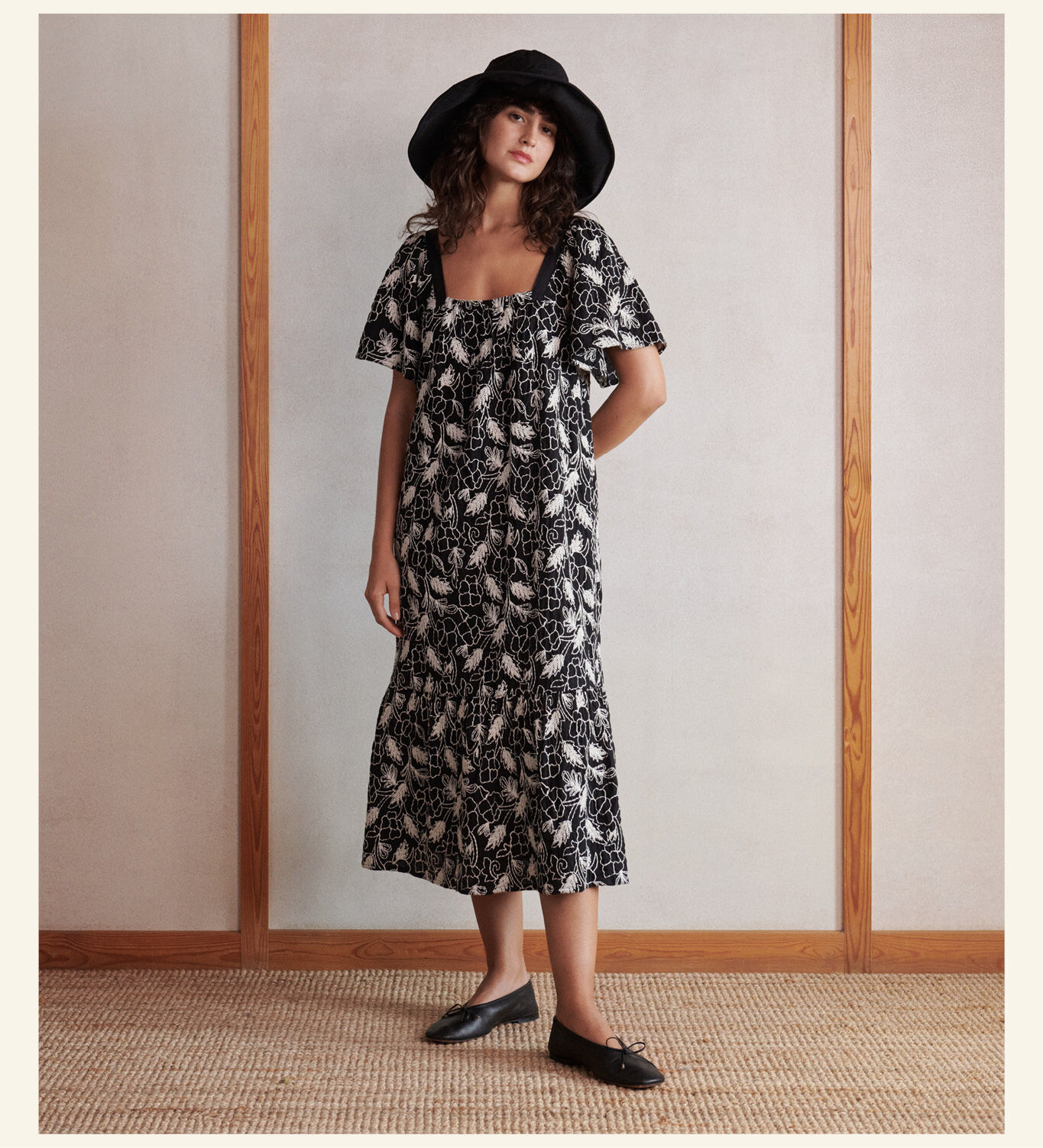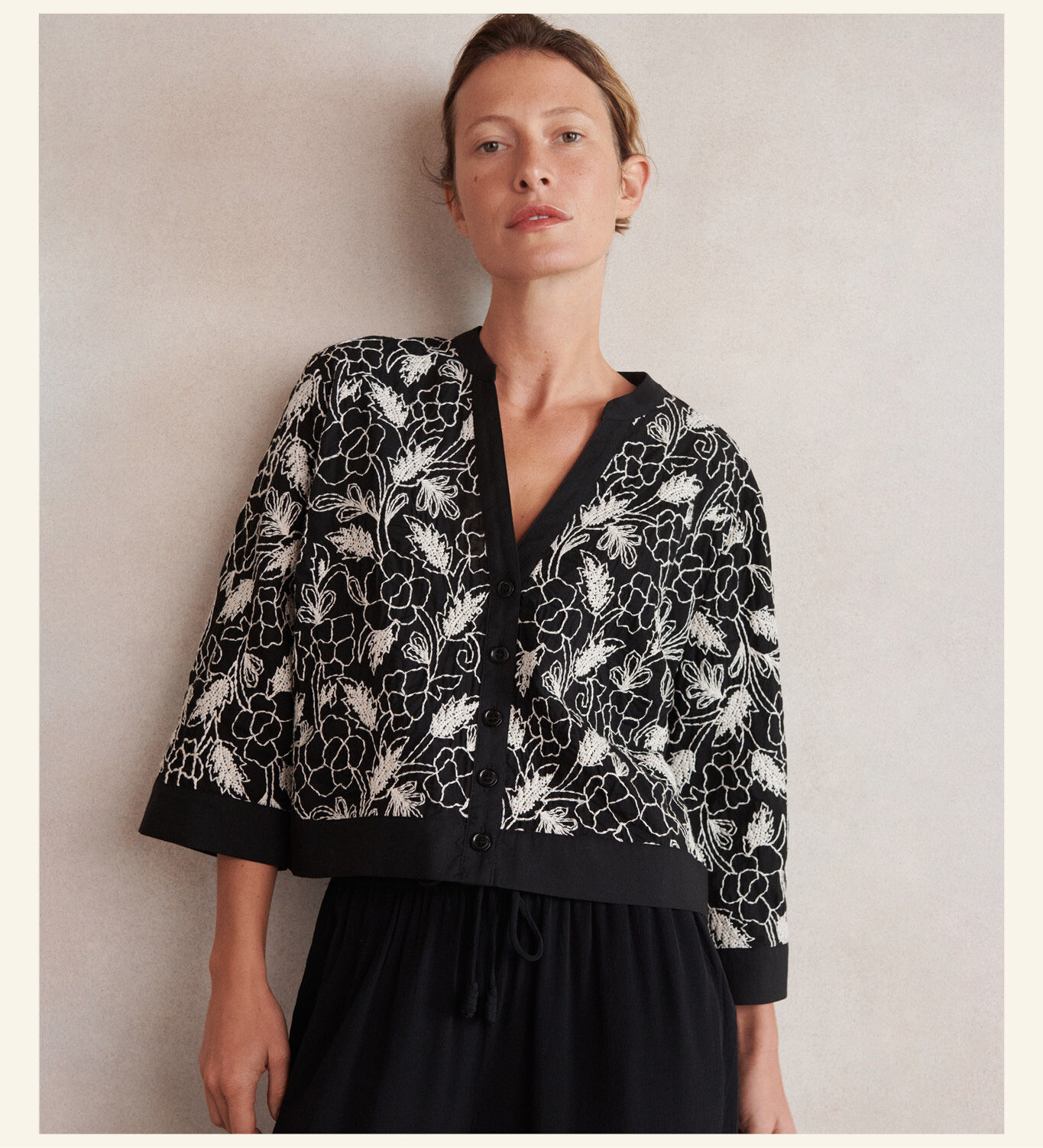 Flattering shapes, beautiful colours and elegant details. This collection has it all. Check out this pretty, feminine embroidered floral print. Perfect for any occasion, whether it’s a big party or a more intimate event.