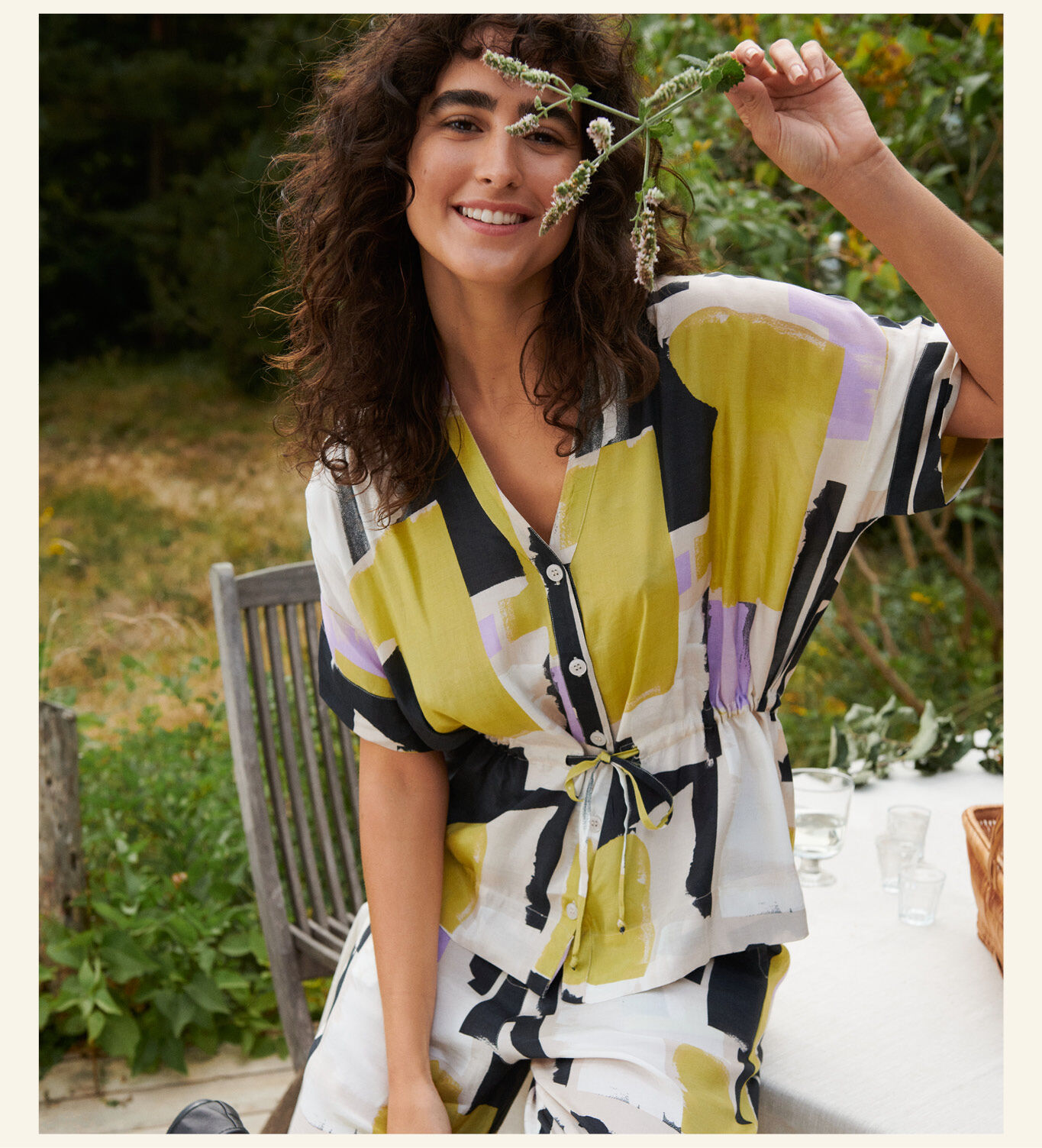 Summer’s fresh new print is a hand-drawn work of art – perfect in a smart matching set from head to toe.