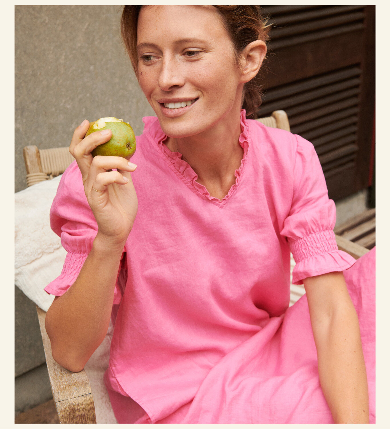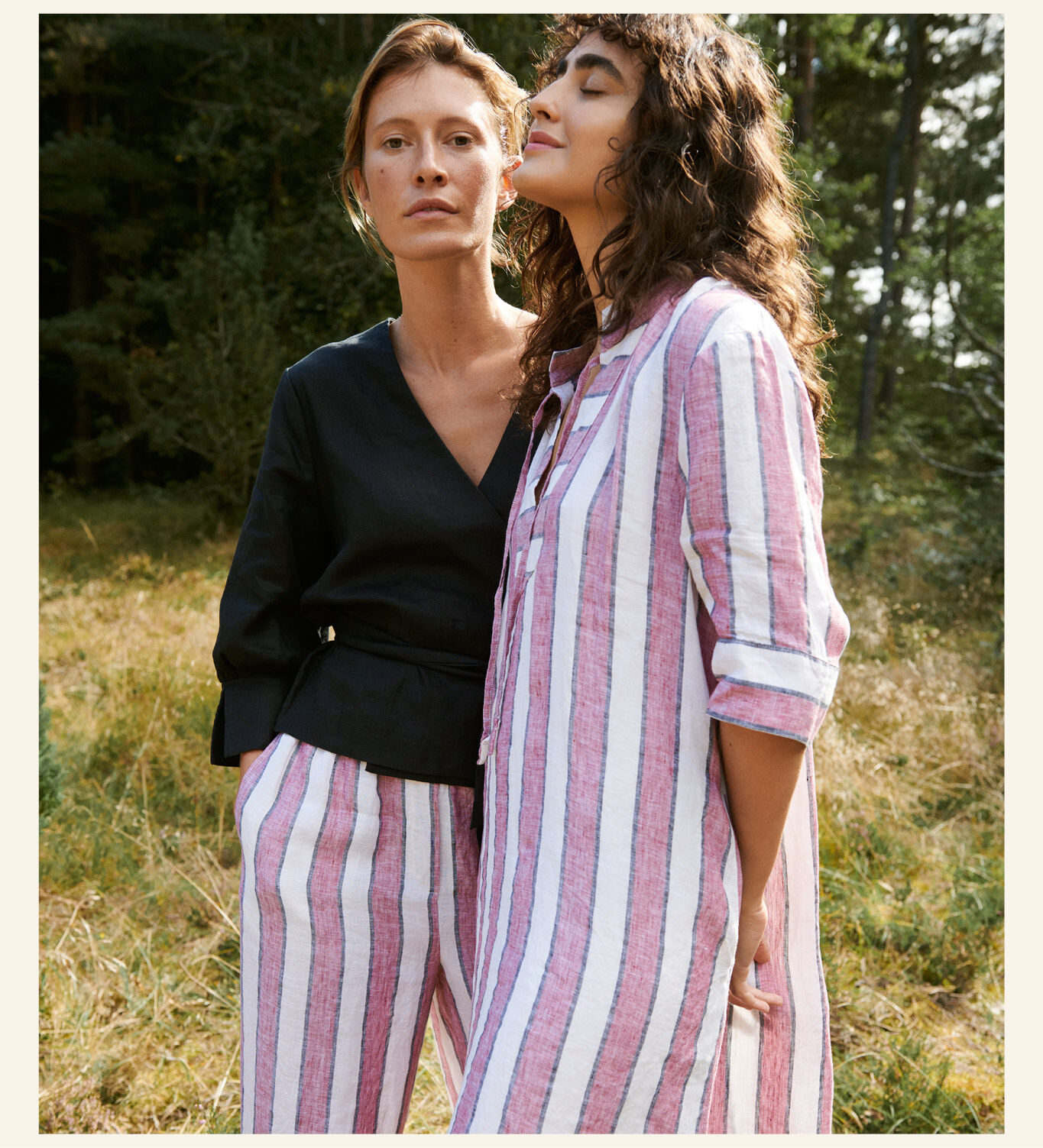 Create a timeless summer look with styles in linen, and enjoy how they grow softer and more beautiful every time you wear them.