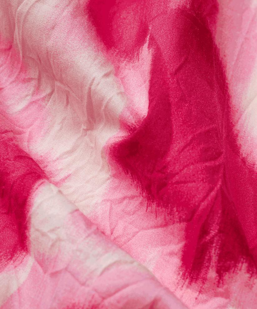 Create a light and summery look with this feminine tunic. It's made from lightly crinkled cotton with a sparkling pink batik print. The tunic features several feminine details such as a small ruffle edge at the neck, short cuff sleeves and a beautiful V-neck. It's also designed with discreet slip pockets so you always have somewhere to put your hands. Use the tunic to add lots of colour to your day.